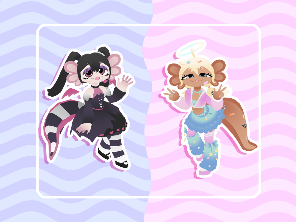 Lotta and Lotta Vrchat models PC and Quest compatible, 7 body and clothing color options.